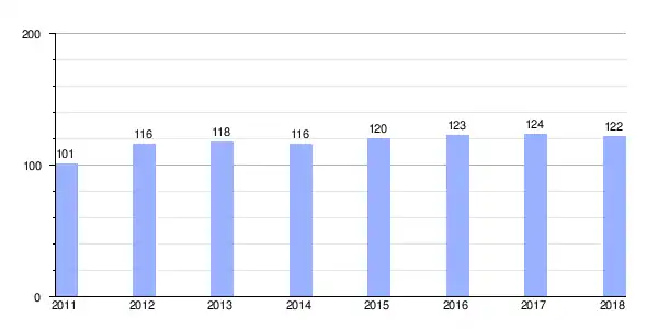 | Gráfica de evolución demográfica de Pumares entre 2011 y 2018 |
