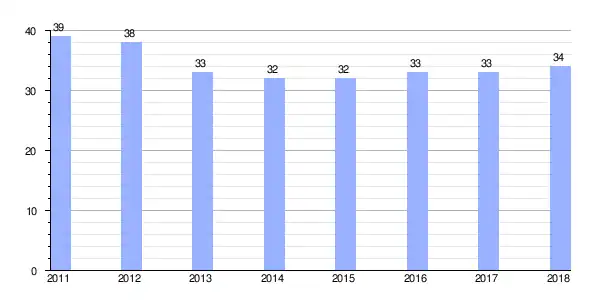 | Gráfica de evolución demográfica de Pumariño entre 2011 y 2018 |