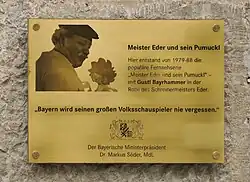Placa conmemorativa de Gustl Bayrhammer, quien interpretó al maestro Eder en la serie de 1982.
