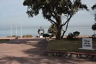 La Plaza de la Armada o Plaza Virgilio, situada en una amplia punta de la costa, se suma al grupo de espacios públicos de curiosa conformación. Tiene características más cercanas a un Parque que a una Plaza. Los límites son muros bajos, fajas de árboles o los imprecisos barrancos, algunos suaves y otros de cortes más dramáticos. Al borde mismo del barranco sur, se yergue la enigmática escultura realizada por el artista plástico hispano uruguayo, Eduardo Diaz Yepes. El monumento-escultura en honor a los caídos en Actos de Servicio de la Armada, es un gran bronce de concepción abstracta, que representa el conmovedor momento de la muerte. En dicha obra son representados animales marinos y las manos de un hombre aferrándose a la masa sin forma. La situación privilegiada de esta Plaza hace de ella un paseo tranquilo y con cualidades paisajísticas únicas.