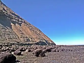 Se trata de una punta constituida por rocas sedimentarias del terciario hace 35 millones de años. Sus faldas descendentes, así como en los cerros circundantes, están formadas por acumulaciones marinas de sucesivos ingresos del mar sobre el continente o diversos episodios de levantamientos, se trata de la "formación Patagonia". La demostración de ello es la existencia de fósiles con un espesor que aumenta hacia la costa. Se observan en esta formación, características del ambientes marinos como, erizos, caracoles turritelas, y los ostrones u ostreas; si se realiza una recorrida por los sectores altos que rodean a la Villa, puede toparse con numerosas valvas de ostras, y en algunos casos con ostras enteras en posición de vida.[4]