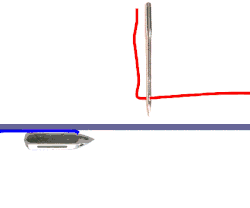 Máquina de coser produciendo un punto cadena utilizando una lanzadera oscilatoria.