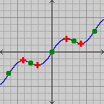 - La función ƒ(x) = x3 − 3x + 1 es diferenciable en todas partes, con la derivada ƒ′(x) = 3x2 − 3. Tiene dos puntos críticos, en x = −1 y x = 1. Los correspondientes valores críticos son ƒ(−1) = 3, que es un valor máximo local, y ƒ(1) = −1, que es un valor mínimo local de ƒ. Esta función no tiene máximo o mínimo global. Debido a que ƒ(2) = 3, se observa que un valor crítico puede también ser alcanzado en un punto no crítico. Geométricamente, esto significa que una línea tangente horizontal a la gráfica en un punto (x = −1) puede intersecar la gráfica en un ángulo agudo en otro punto (x = 2).