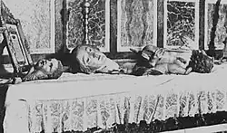 - ↑ El pedestal, al no estar unido a la escultura, quedó intacto en la hornacina.