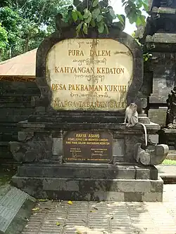 ↑ abcdeFolleto para los visitantes "Welcome to the Sacred Monkey Forest Sanctuary" (Mandala Suci Wenara Wana) Padangtegal, Ubud, Bali, de 26 de marzo de 2015.