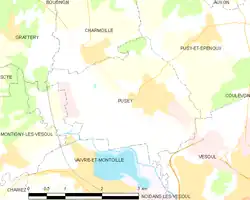 Pusey es una población y comuna francesa, situada en la región de Franco Condado, departamento de Alto Saona, en el distrito de Vesoul y cantón de Vesoul-Ouest.