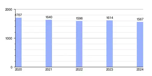 Hasta 2024 la población era de 1567 habitantes,[2] con una densidad de población de 63,64 hab/km².[2]