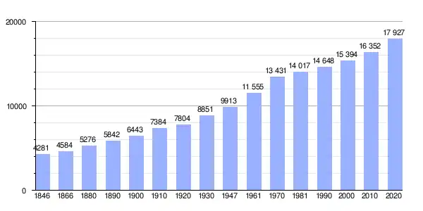 Todos los datos históricos relativos al actual municipio, el siguiente gráfico refleja su evolución demográfica, incluyendo municipios después de efectuada la fusión el 1 de enero de 1977.