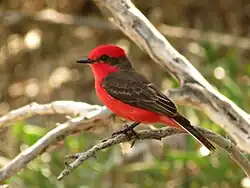↑ abcdCarmi, O., C. C. Witt, A. Jaramillo, and J. P. Dumbacher (2016). Phylogeography of the Vermilion Flycatcher species complex: Multiple speciation events, shifts in migratory behavior, and an apparent extinction of a Galápagos-endemic bird species». Molecular Phylogenetics and Evolution 102: 152-173.