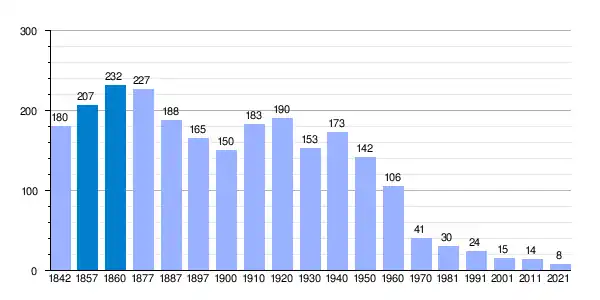 | Gráfica de evolución demográfica de Quiñonería[6] entre 1842 y 2021 |