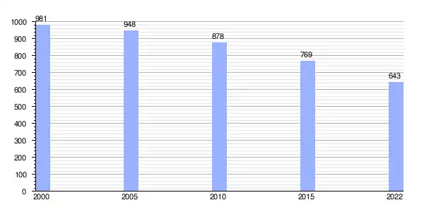 | Gráfica de evolución demográfica de Quines (parroquia) entre 2000 y 2022 |