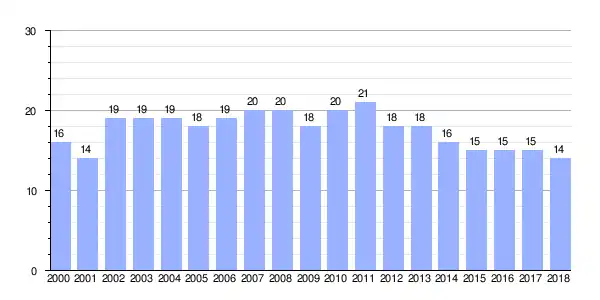 | Gráfica de evolución demográfica de Quintás entre 2000 y 2018 |