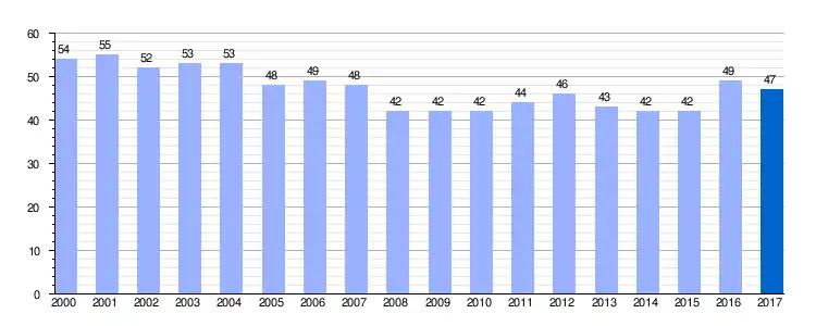 | Gráfica de evolución demográfica de Quintana de los Prados entre 2000 y 2017 |