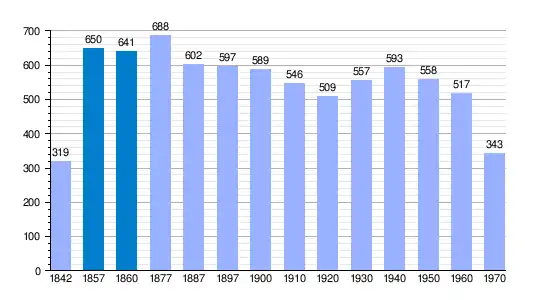| Gráfica de evolución demográfica de Quintanaloranco[2] entre 1842 y 1970 |
