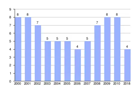Población de derecho (2000-2018) según los censos de población del INE a 1 de enero de cada año.[6] |