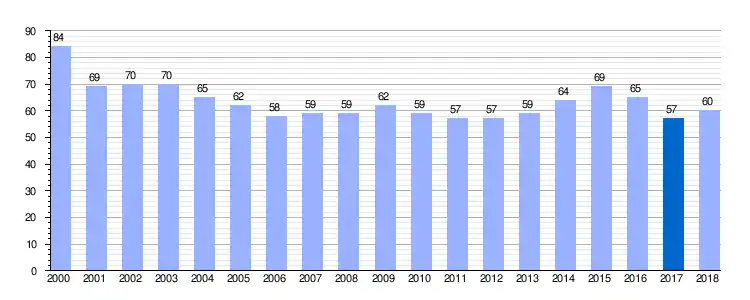 | Gráfica de evolución demográfica de Quintanilla-Somuñó entre 2000 y 2018 |