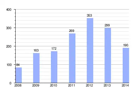 | Gráfica de evolución de la deuda viva del ayuntamiento entre 2008 y 2014 |