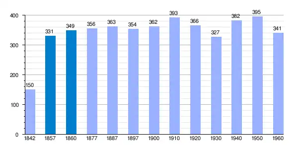 | Gráfica de evolución demográfica de Quintanilla de Tres Barrios[5] entre 1842 y 1960 |