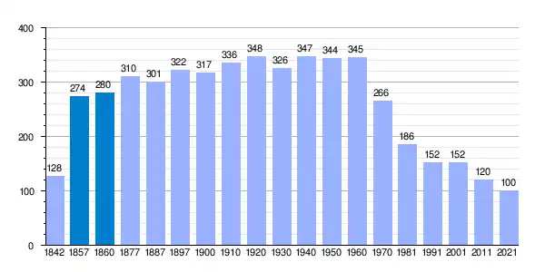 | Gráfica de evolución demográfica de Quintanilla de Urz[9] entre 1842 y 2021 |