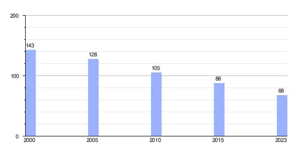 | Gráfica de evolución demográfica de Quiroganes entre 2000 y 2023 |