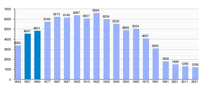 | Gráfica de evolución demográfica de Quirós[1] entre 1842 y 2021 |