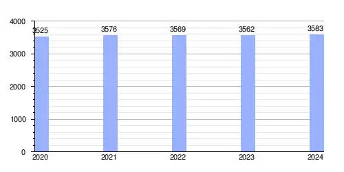 Hasta 2024 la población era de 3583 habitantes,[2] con una densidad de población de 101,50 hab/km².[2]