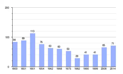 | Gráfica de evolución demográfica de Révillon entre 1800 y 2014 |