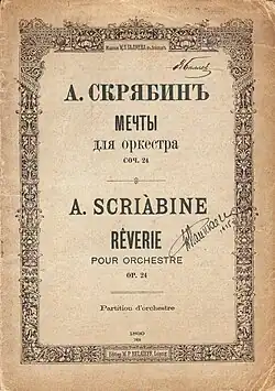 En noviembre de 1898 Skriabin viajó a San Petersburgo, y le llevó un presente, una sorpresa, a su editor Mitrofán Beliáyev. El presente era la partitura completa de una obra orquestal llamada Prélude, una pequeña miniatura en Mi menor y forma ternaria.[1] Como a Belaïeff no le parecía adecuado denominar Prélude a una pieza orquestal, decidieron renombrarla como Rêverie. Además, debían buscar un nombre eslavo para las ediciones en ruso, así que barajaron mechty (ensoñación) y gryozy (contemplación, meditación), eligiendo el primer nombre.[1]
