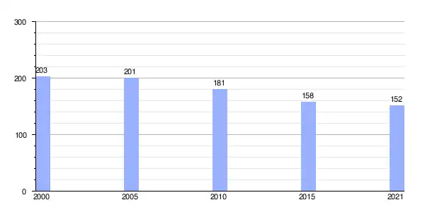 | Gráfica de evolución demográfica de Ría de Abres entre 2000 y 2021 |
