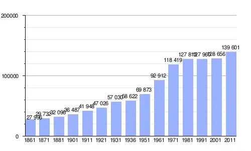 | Gráfica de evolución demográfica de Rímini entre 1861 y 2011 |