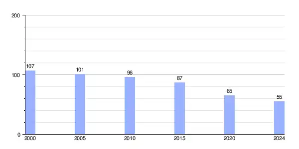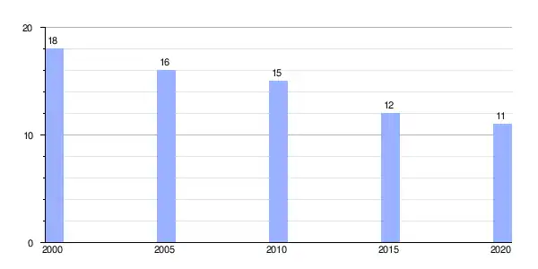 | Gráfica de evolución demográfica de Río (aldea) entre 2000 y 2020 |