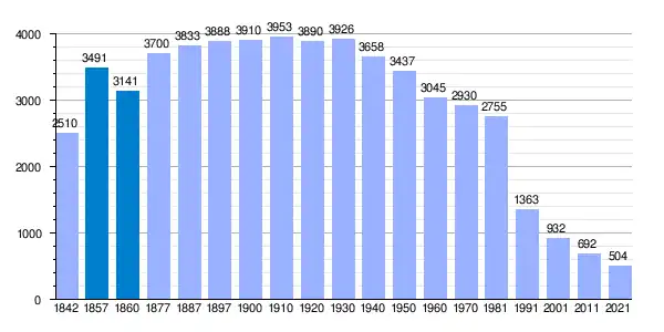 | Gráfica de evolución demográfica de San Xoán de Río[3] entre 1842 y 2021 |