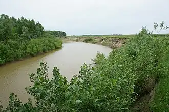 El río, desde que deja las montañas de Altái, describe los grandes meandros característicos de los ríos de la estepa. Sus aguas se utilizan fundamentalmente para el riego de cultivos. Cuando el río desemboca en el Obi, tiene una anchura de unos 70 m y una profundidad de 1,5 m.