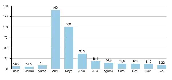 Considerando sólo el período estival libre de hielo (de abril a octubre) el caudal mensual mínimo observado fue de 4,04 m³/s, en agosto de 1956.