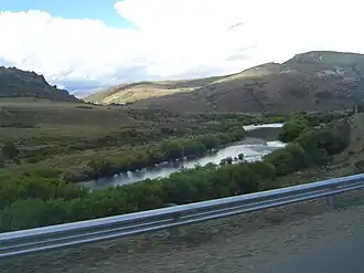 El río Aluminé corre por un estrecho valle, rodeado de montañas relativamente altas, y su cauce tiene violentos rápidos en casi todo su transcurso. Junto al río se encuentran bosquecillos ralos de pehuenes y manzanos silvestres; la tradición atribuye al misionero Nicolás Mascardi la introducción del manzano en la región, en el siglo XVII.