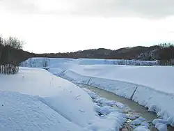 Las riberas de la mayor parte de su tramo están protegidas con hormigón. La Oficina de Trabajos Fluviales de Sapporo construyó en el río una presa de arena.[4]