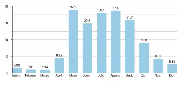 Caudal mensual medio del Atsá (en m³/s) medidos en la estación hidrométrica de Atsá
