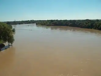 El río visto desde el puente entre General Mansilla y Eva Perón. | ||