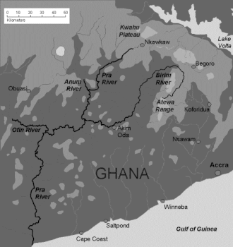 - ↑ «Forest Plantation Development Workshop held at Oda». The Ghanaian Journal. 30 de octubre de 2008. Consultado el 21 de marzo de 2009.