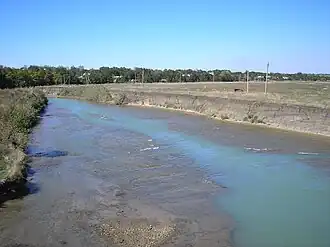 Otros embalses más pequeños se encuentran más abajo en el curso del río, como el embalse de Yegorlyk, pocos kilómetros por debajo de Senguilevskoye, o el embalse de Novotróitskaya, en Solnechnodolsk. Luego el río oma rumbo nordeste a través de la estepa y después vira hacia el oeste. Tras atravesar Privolnoye entra en el óblast de Rostov, donde gira al nordeste y luego al norte. En un corto tramo el río es frontera entre el óblast de Rostov y la república de Kalmukia.