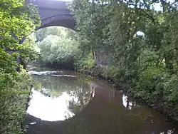 El río continúa hacia el sureste pasando la iglesia de St. Mary. Fluye bajo el Great Western Railway en el Viaducto de Wharncliffe,[20] de 900 pies de largo (270 m), un puente ferroviario de gran envergadura que transporta la línea principal de ferrocarril desde Paddington hasta el oeste de Inglaterra.