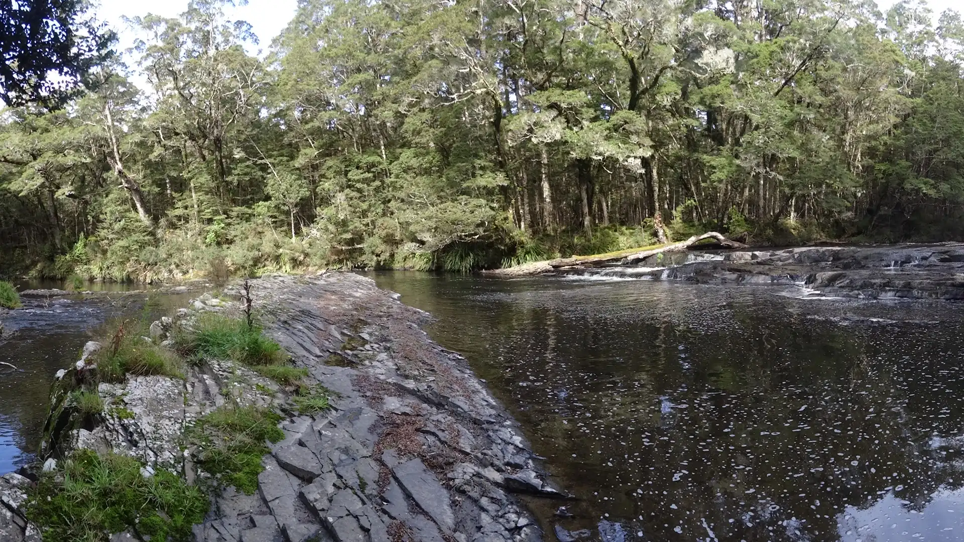 La fuente del río se encuentra al oeste del Monte Rosebery, a quince kilómetros al suroestes de Clinton.