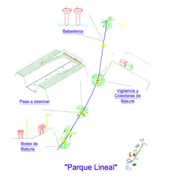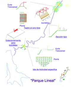 El proyecto corresponde a implementar vegetación originaria de la zona, rescatando la flora y fauna de los alrededores. En arquitectura se va a buscar que todo lo que corresponde al proyecto pueda convertirse en un ícono para el municipio de Cuautitlán Izcalli; utilizando maneras amigables en el uso de la decoración para crear un interés en las personas por regresar. Se propone construir una pista de correr, por todas aquellas personas que salen a correr en la mañana por los márgenes del río y a la vez para evitar cualquier accidente que incluya al cuidado.
