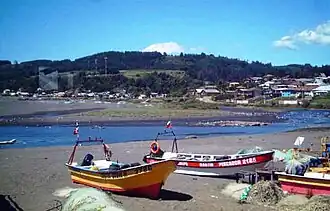 Botes varados en la caleta Curanipe, la desembocadura del río Curanipe. | ||