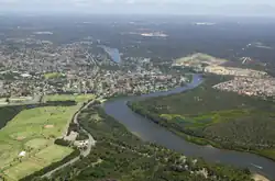 La presa de Liverpool forma actualmente el límite de marea más alto y la presencia de agua salada en el río Georges.