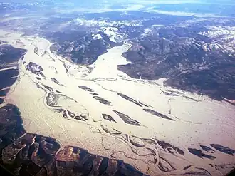El río fluye a través de los distritos administrativos (raiones) de Solnechny y Komsomolsk. Más del 80 % de la cuenca del río está cubierta por bosques. La reserva natural de Komsomolsk, un zapovédnik (reserva natural estricta), se encuentra en su curso inferior, en el área de su confluencia con el Amur.