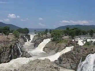 En la isla Sivasamudra el río se deja caer desde los 98 metros (320 pies), formando las famosas caídas conocidas como Gagan chukki y Bara Chukki. La primera central hidroeléctrica de la India (construida en 1902) estaba sobre las caídas del lado izquierdo y suministró energía a la ciudad de Bangalore. Bangalore, electrificado en 1906, fue la primera ciudad en Asia en ser electrificada y tener luz eléctrica en las calles.