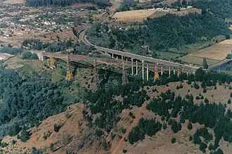 ![]() El viaducto del Malleco y el puente carretero de la Ruta 5 Sur sobre el río. | ||