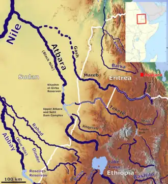 El Mareb era importante históricamente como límite entre dos regiones gobernadas por separado en la zona: la tierra del Bahr negash (tigriña "reino del mar", también conocido como Medri Bahri o "tierra de/junto al mar") al norte del río, y el Tigray al sur. Los territorios bajo el Bahr negash se extendían hasta la costa del mar Rojo, al norte, y hasta Shire, al sur (y al oeste),[5] y la capital estaba en Debarwa, en la actual Eritrea, a unas 20 millas (30 km) al sur de Asmara.