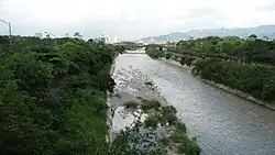 ![]() Imagen del río discurriendo por el centro de Medellín. | ||